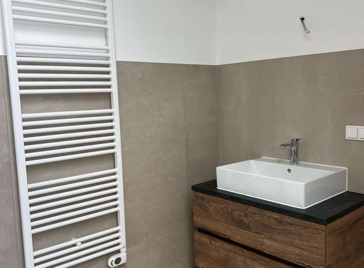 Im Badezimmer erwartet Sie eine komfortable Ausstattung: Eine ebenerdige Dusche sowie eine