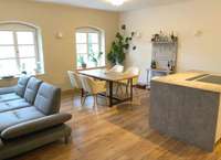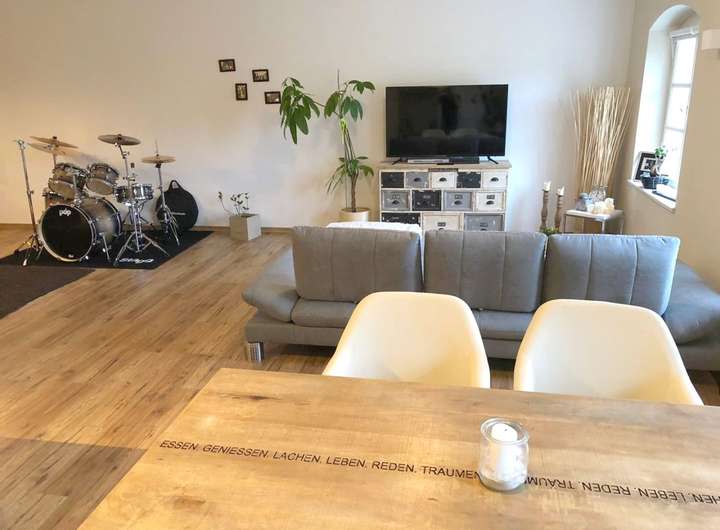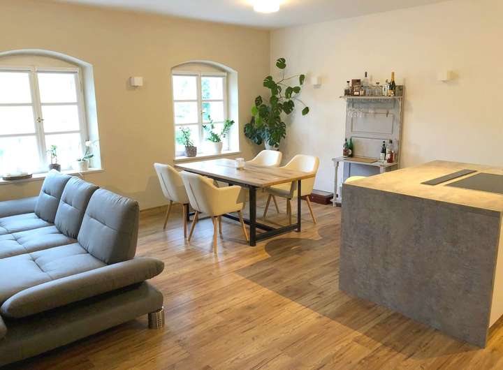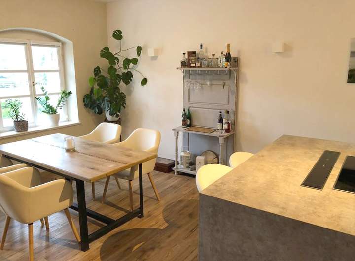 Es erwartet Sie eine traumhafte 2-Zimmer-Loftwohnung mit Altbaucharme und einer Wohnfläche von ca. 88,4 m². Die Wohnung verfügt über einen Vinylboden, ein Tageslichtbad mit Dusche, Waschtisch, Badewanne und WC sowie über eine Fußbodenheizung in der gesamten Wohnung. Die im Wohnbereich integrierte Küche ist vollständig mit allen Geräten ausgestattet. Weitere Ausstattungsmerkmale sind doppelt verglaste Holzflügelfenster, TV- und Internetanschluss sowie eine Klingel-Gegensprechanlage mit Kameraüberwachung.