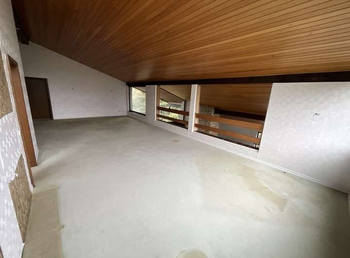Eine weitere Bebauung wäre hier durchaus denkbar. Das Haus verfügt über ein ausgebautes Pultdach (Braas-Ziegel), einen Vollkeller, eine moderne Gaszentralheizung, großflächige Holzfenster mit Isolierverglasung, eine Galerie und viele weitere Details.
