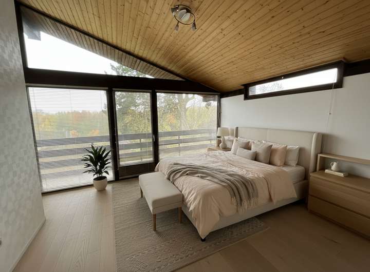 Das Obergeschoss bietet Platz für eine eigene Einliegerwohnung, für drei Kinderzimmer und/oder fürs Homeoffice. Hier finden Sie drei großzügige Zimmer, zwei davon mit Zugang zur Loggia/Balkon, ein separates WC sowie ein Badezimmer.