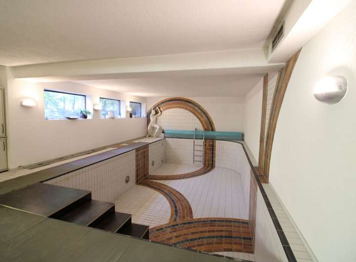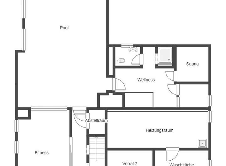 Das Haus ist vollunterkellert und bietet damit weitere Möglichkeiten für Hobby, Werkstatt und Lagerflächen. Darüber hinaus befindet sich im Keller ein großer Wellness- & Spa-Bereich, bestehend aus einem Pool, einer Sauna, möglichem Fitnessraum, Umkleide, Dusche und WC. Ebenfalls wird ein Solarium mit angeboten. Die Sauna ist voll funktionstüchtig, die Pooltechnik muss überholt und damit modernisiert werden, bevor eine Nutzung möglich ist.