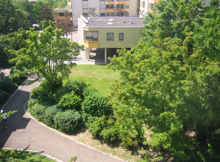 Ein Hausmeisterservice kümmert sich um die Treppenhausreinigung und den Winterdienst. Zur Wohnung gehören außerdem ein Kellerraum im Untergeschoss und ein Frei-Stellplatz.