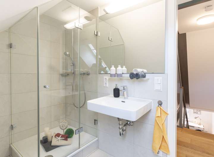 Im DG ist ebenfalls ein Duschbad vorhanden. Hierdurch lässt sich die DG Einheit mit Galerie gut seperat nutzen.