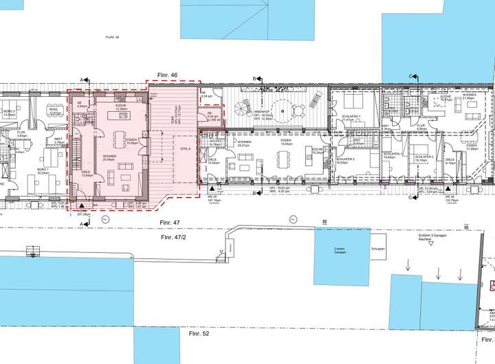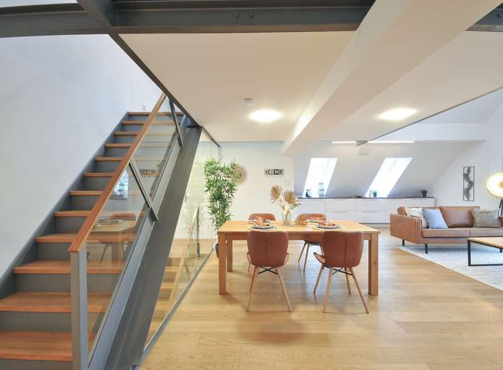 Hier sind im Jahr 2017 sieben kernsanierte und hochwertig ausgestattete Wohneinheiten mit individuellem Charakter und Charme entstanden (ehemalige Schreinerei).