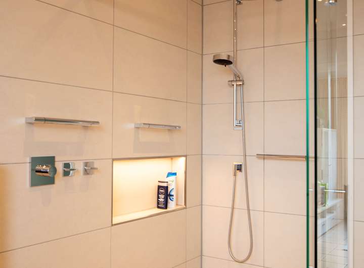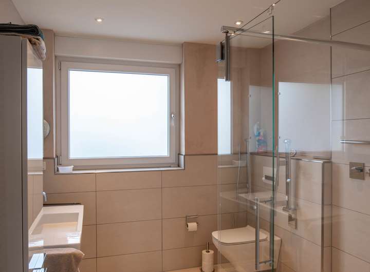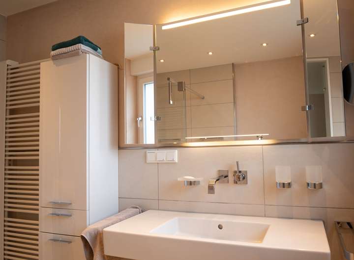 • modernes Tageslichtbad mit bodengleicher Dusche