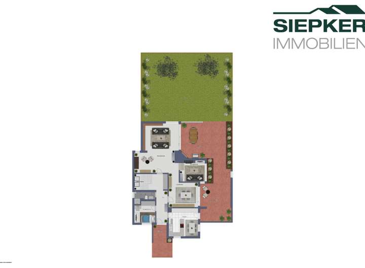 Von der Küche gelangen Sie auf die Frühstücksterrasse und in die Doppelgarage.