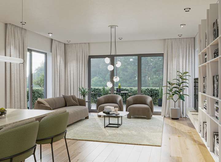 Die Einrichtungsgegenstände und Bodenbeläge (außer Bodenbeläge in Bad und WC) sind nicht in unseren Leistungen enthalten und müssen, wenn gewünscht, extra bestellt werden.