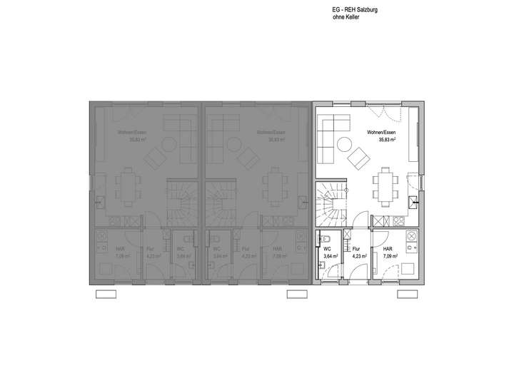 Der hier angebotene Preis beinhaltet den Kaufpreis für ein ausgebautes Reiheneckhaus "Salzburg" mit Keller, inkl. Grundstück, zzgl. Erwerbs- und Baunebenkosten.