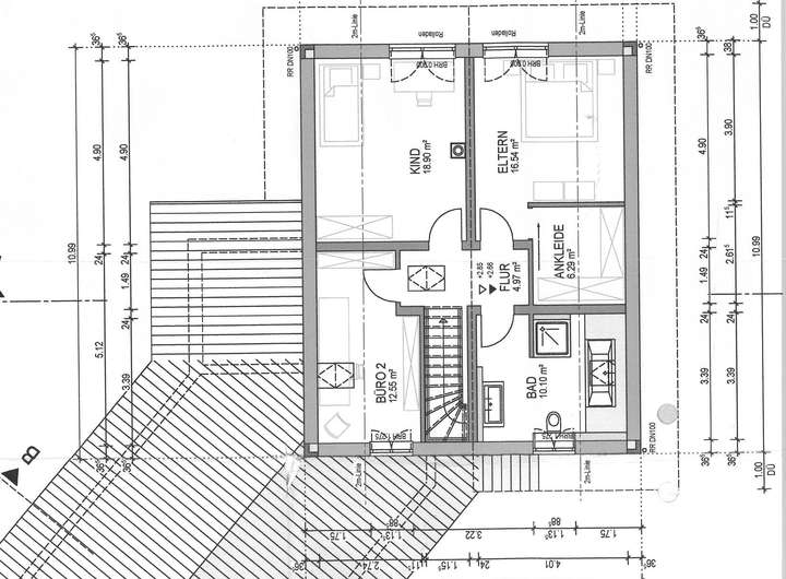 Über eine geschwungene Holztreppe kommt man in das DG mit 3 Räumen, ein Schlafzimmer mit Ankleide sowie 2 Kinderzimmer und einem modernen Bad mit Wanne, begehbarer großer Dusche und Fenster.