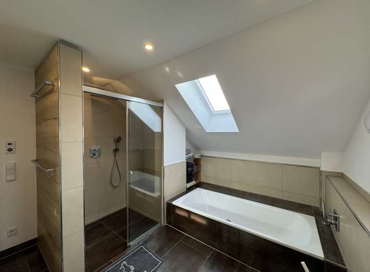 - Bad: moderne, hochwertige Ausstattung z.B. Wanne, begehbare Glasdusche, Fenster