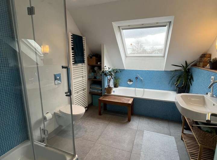Im Bad ist eine angenehme Fußbodenheizung verbaut.