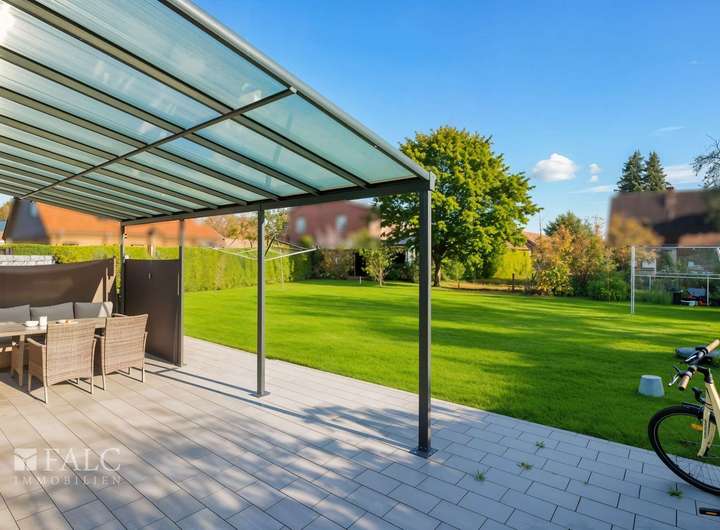 Der Außenbereich besticht durch eine gepflegte Gartenanlage, die Ihnen viel Platz für Freizeitaktivitäten bietet. Die Terrasse lädt dazu ein, sonnige Tage im Freien zu genießen und bietet ausreichend Platz für Gartenmöbel und Grillabende.
