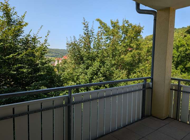 Ein besonderes Highlight ist der Balkon, der aus dem gemütliche Wohnzimmer mit direktem Zugang begehbar ist.