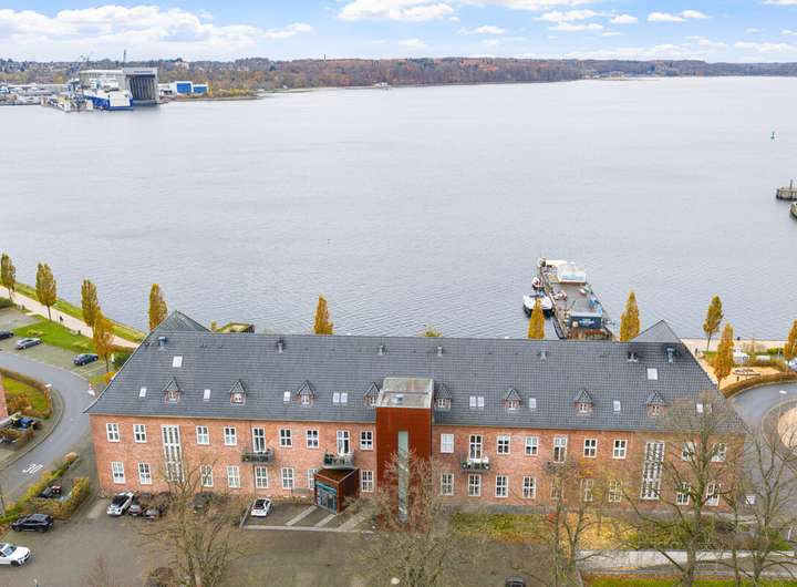 Entlang der Uferpromenade reihen sich stilvolle Apartmenthäuser, Lofts und Gastronomiebetriebe aneinander – viele davon mit direktem Blick auf die Förde und den Yachthafen.