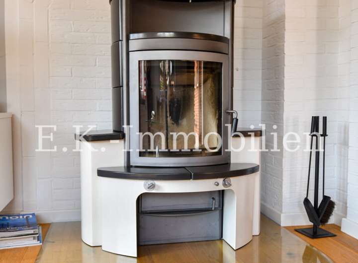 Das Erdgeschoss überzeugt mit einem einladenden Flur, einer großzügigen Küche mit heller Einbauküche und Platz für einen großen Esstisch sowie einem gemütlichen Kaminofen. Vom offenen Wohn- und Essbereich - ebenfalls mit Kamin - aus gelangt man auf die Terrasse. Zusätzlich gibt es einen Nebeneingang mit Hauswirtschaftsraum. Im Obergeschoss befinden sich ein modernisiertes Badezimmer, das Elternschlafzimmer und zwei helle Kinderzimmer – alle mit Echtholzparkett ausgestattet.