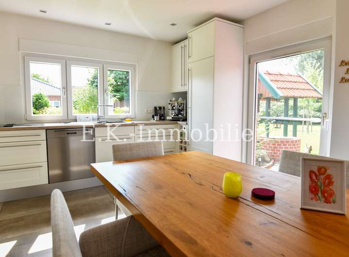 Die Umgebung lädt zu Spaziergängen, Fahrradtouren und Ausflügen in die ostfriesische Landschaft ein. Wiesen, Felder und kleine Kanäle prägen das Bild dieser charmanten Region und sorgen für eine hohe Lebensqualität.