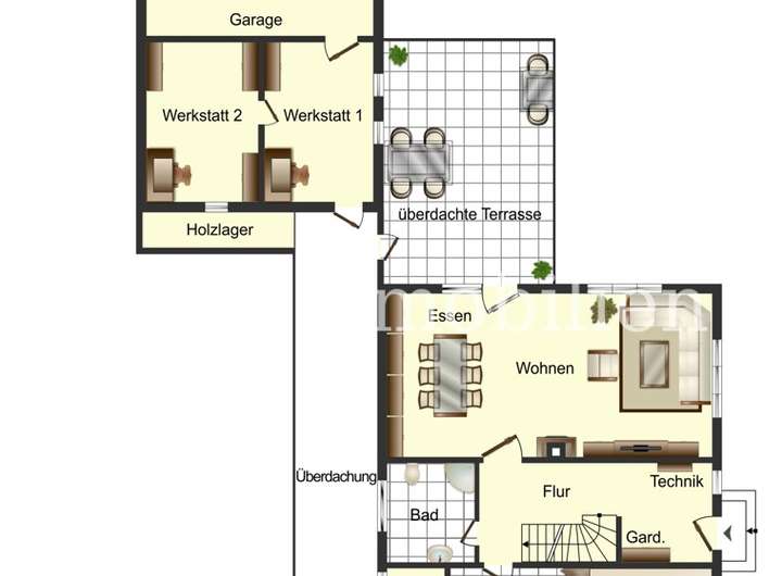 Nebengebäude mit Werkraum 1, Werkraum 2 und Garage