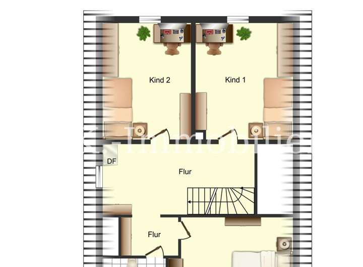 Flur, Eltern-Schlafzimmer, Kinderzimmer 1, Kinderzimmer 2, Badezimmer mit Wanne und WC