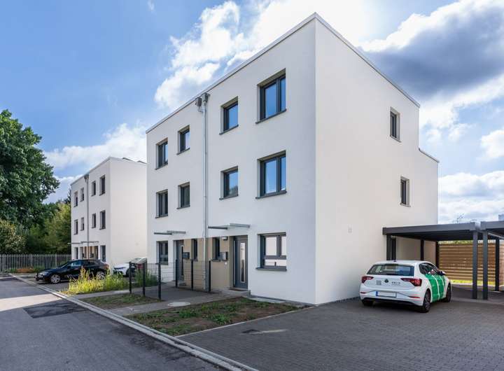 In der Von-Werth-Straße in Pulheim-Brauweiler entsteht ein neues Wohnquartier mit insgesamt 34 Doppelhaushälften in drei unterschiedlichen Varianten. Alle Häuser erstrecken sich über vier Etagen und zeichnet sich durch eine klare, moderne Architektur aus. Große Fensterflächen lassen viel Tageslicht in die Räume, während Holzfußböden eine warme Grundatmosphäre schaffen.