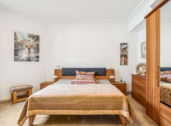 Besonders durchdacht ist der ebenerdige Masterbereich: Über eine Ankleide erreichen Sie das großzügige Schlafzimmer mit direktem Zugang zum exklusiven Master-Bad. Dieses bietet mit Whirlpool-Badewanne, Dusche, Doppelwaschbecken, Bidet und WC höchsten Komfort – Ihre private Wohlfühloase.