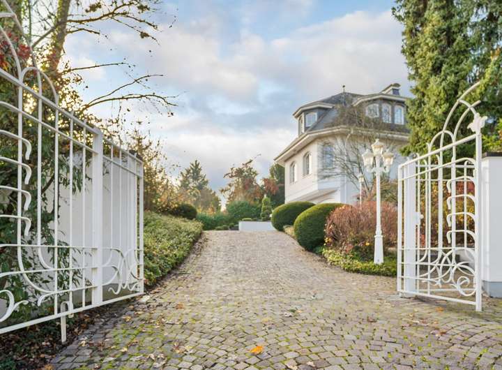Willkommen in Ihrem neuen Zuhause – einer Villa, die mehr ist als ein Haus. Sie ist ein Ort des Ankommens in Ihrem persönlichen Refugium. Schon das weiße, kunstvoll geschmiedete Eisentor, das den Weg auf das ca. 1.572 m² große Grundstück eröffnet, verrät, dass es sich hier um eine besondere Immobilie handelt.