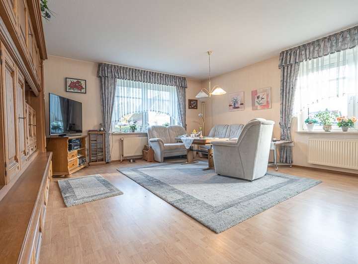 Auf einem 938 m² großen Grundstück wurde 1995 dieses große Einfamilienhaus in massiver Bauweise errichtet. Die Aufteilung und die Wohnfläche von mehr als 175 m² gibt viele Nutzungsmöglichkeiten, bei großzügigen Spielraum. Die süd-westliche Ausrichtung des Gartens, sowie die Größe des heimischen Außenbereiches ermöglichen viele herrliche und private Sommerabende auf der eigenen überdachten Terrasse und/oder auch in dem hochwertigen Wintergarten mit elektrischer Markise. Hervorzuheben ist ebenfalls der vielseitige Garagen- und Gerätebereich. Im Jahre 2023 wurde die Gastherme bereits einmal ausgetauscht.
