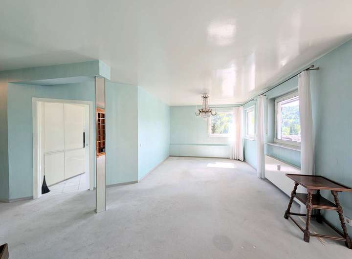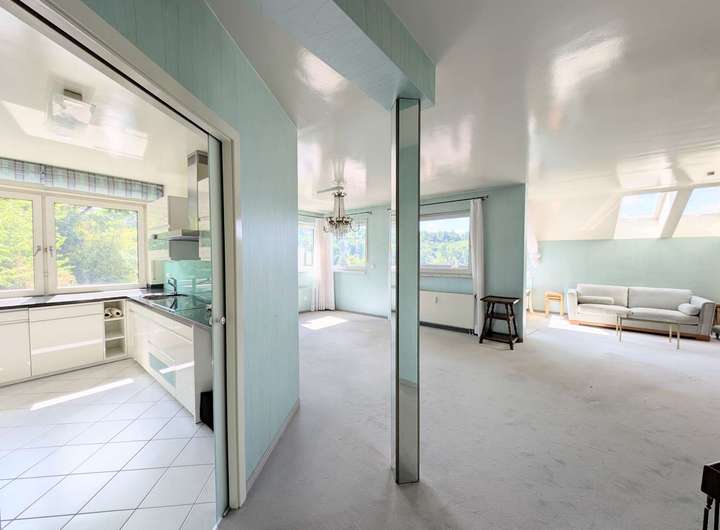 Besonders attraktiv ist die variable Nutzung: Durch die ursprüngliche Teilung gibt es zwei separate Eingänge und mehrere Bäder. In einem Bereich sind die kompletten Küchenanschlüsse erhalten – ideal für eine Einliegerwohnung, ein Büro oder Räume für eine Betreuungsperson. Eine Rückteilung in zwei eigenständige Wohnungen ist problemlos möglich.
