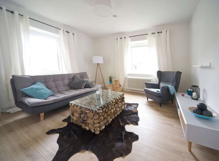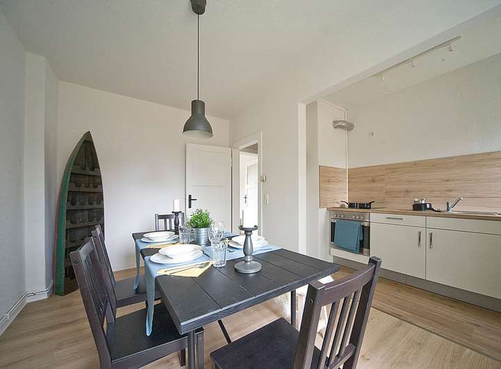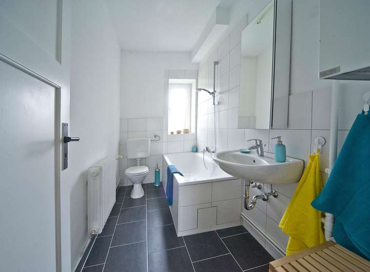 Diese renovierte Wohnung verfügt über ein hell und freundlich gefliestes Tageslichtbadezimmer mit Badewanne. Alle Wohnräume sind in Raufaser weiß tapeziert und mit hochwertigem Laminat ausgestattet. In der großzügig geschnittenen Küche können Sie ein gemütliches Esszimmer einrichten. Eine tolle Einbauküche mit E-Herd und Ofen ist bereits vorhanden. Die Gasetagenheizung sorgt für angenehme Wärme. Das Exposé enthält Bilder unserer Musterwohnung mit Einrichtungsbeispielen.
