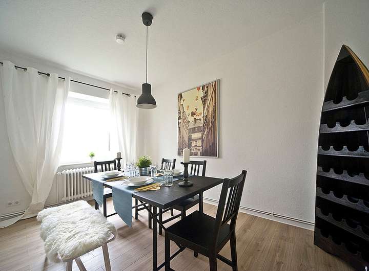 Die Entfernung zur Innenstadt beträgt ca. 5 km. Durch die gute Anbindung an den öffentlichen Personennahverkehr ist das Stadtzentrum in wenigen Minuten zu erreichen. Für die Besorgungen