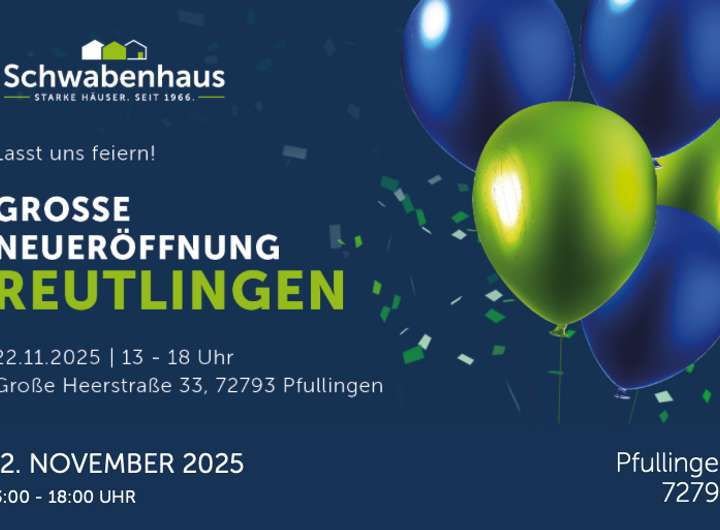 Besuchen Sie unsere große Büroeröffnung am Samstag, 22.11.2025 von 13–18 Uhr in der Großen Heerstraße 33, 72793 Pfullingen.