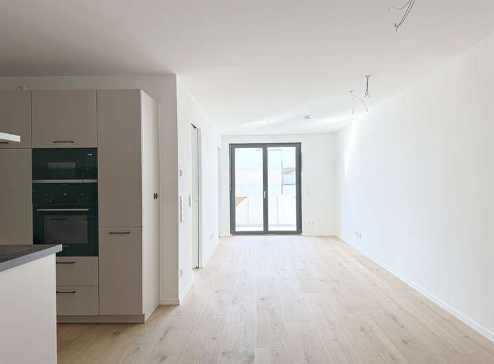 Diese erstklassige 2-Zimmer-Neubauwohnung im 2. Obergeschoss bietet Ihnen modernen Wohnkomfort auf höchstem Niveau. Der helle Wohnbereich mit großer Fensterfront geht nahtlos in die hochwertige Einbauküche über, die mit modernen Geräten ausgestattet ist. Das gemütliche Schlafzimmer bietet Platz für ein großes Bett und einen Kleiderschrank, während das stilvolle Designbad mit einer modernen Dusche (1,20m x 1,20m) und hochwertigen Sanitärobjekten und praktischen Einbaumöbeln überzeugt.