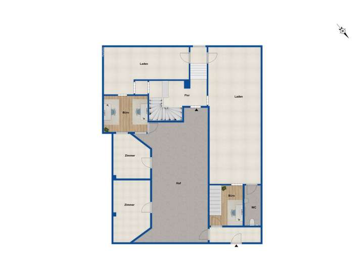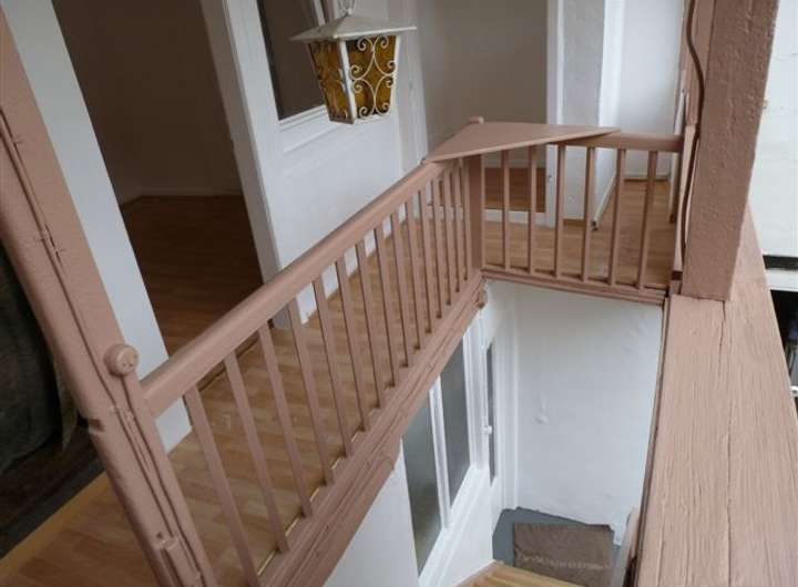 Das Geschäftshaus bietet im 1. Obergeschoss zwei Wohneinheiten wobei eine hiervon (Vorderhaus) vermietet ist und die zweite Einheit (Hinterhaus) neu genutzt/vermietet werden kann. Im Hinterhaus besteht vor einer weiter Vermietung ebenfalls Modernisierungsbedarf.