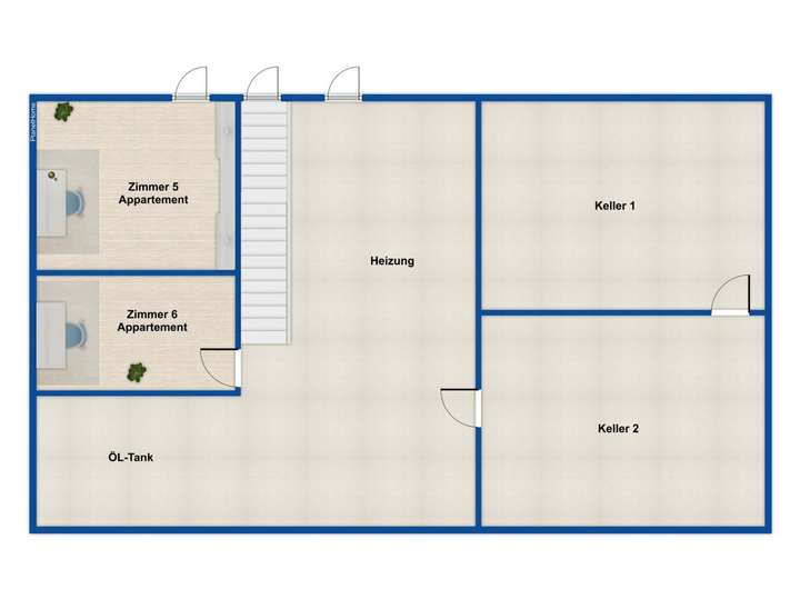 Bei den beiden zusätzlichen Appartements (Bezeichnung im Grundriss mit Zimmer 5 und 6), besteht ein akuter Handlungsbedarf. Nach erfolgter Sanierung besteht hier weitere Optionen zur Vermietung und somit Steigerung des Ertragswertes.