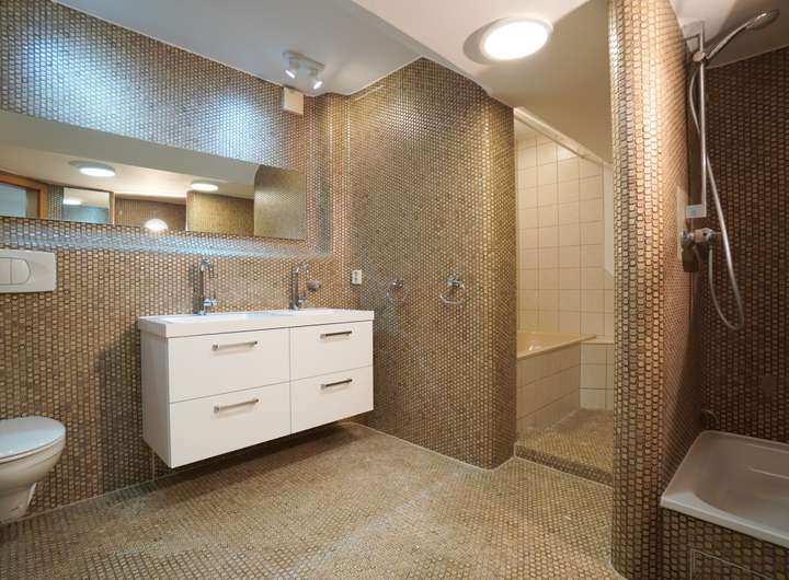 • Vinylböden in den Wohn- und Schlafräumen, Fliesen im Bad