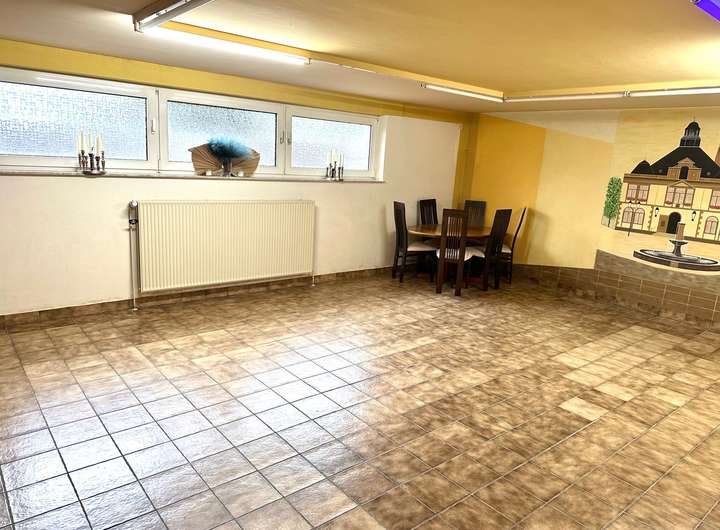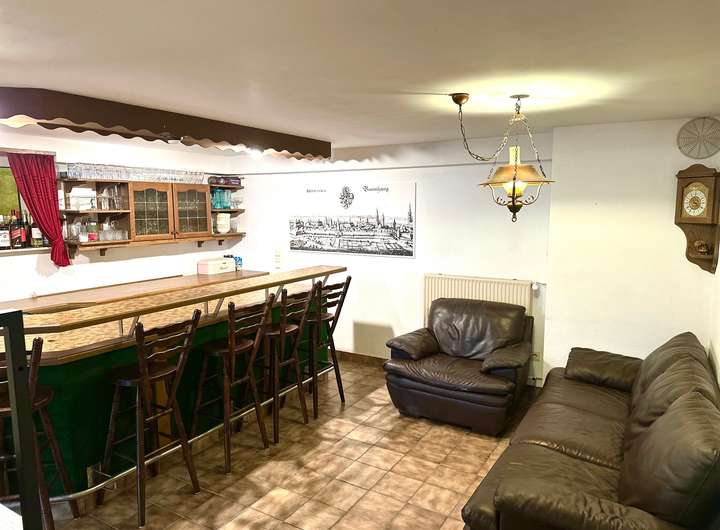 Und dann kommt auch noch der Vollkeller,welcher in den meisten Räumen beheizbar ist und Wohncharakter hat.Der Höhepunkt ist hier der Partykeller mit umfassenden Thekenbereich.Duschbad und WC sind hier auchvorhanden.Gästezimmer,Lagerräume ,Werkstattraum und der Heizungsraum mit angegliedertem Öllager sind hier untergebracht.