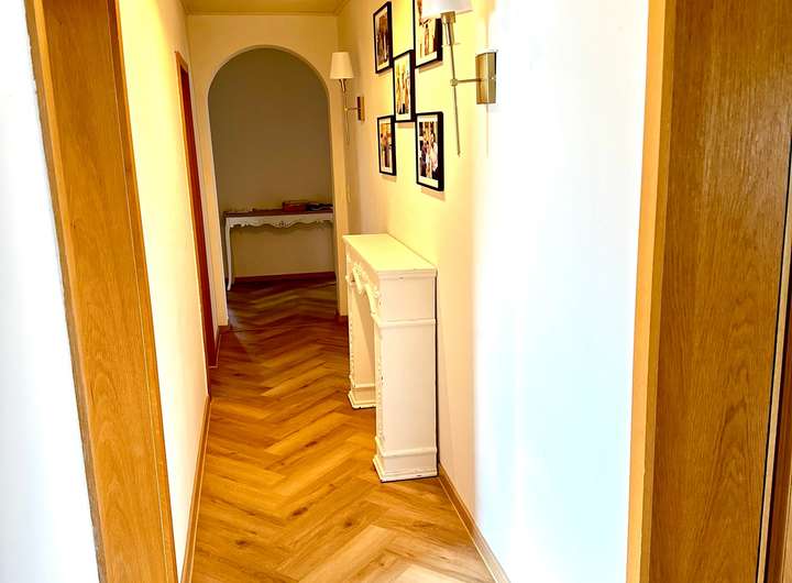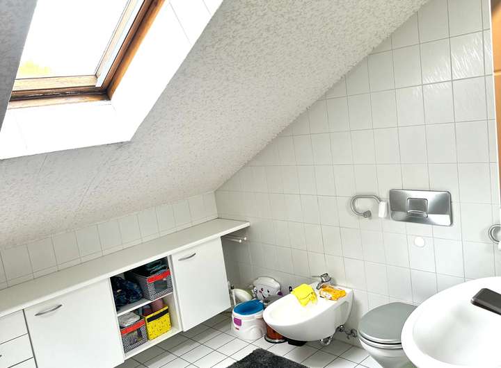 Im Obergeschoss nutzen sie 4 Zimmer ,die Küche (als Schlafraum umgestaltet,alle Anschlüsse erhalten),ein großes Badezimmer,ein Gäste-WC und einen Abstellraum.
