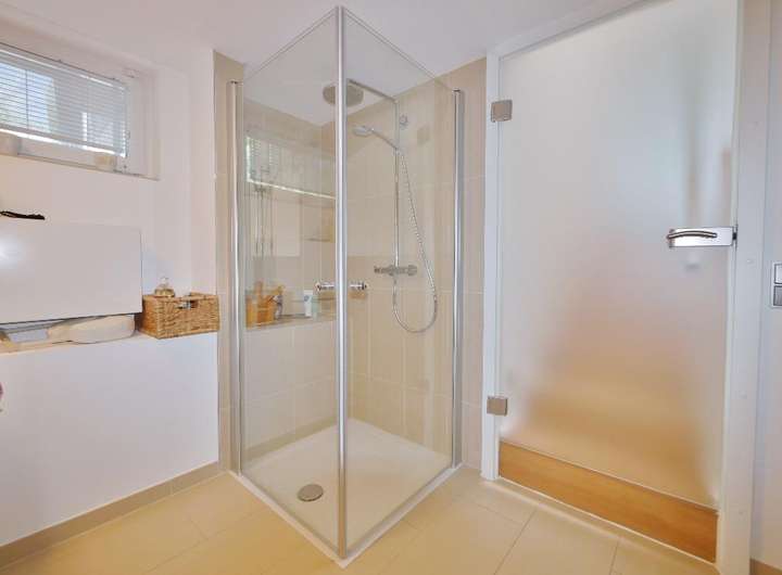 Der Sportbereich und eine moderne, schwedische Dampfsauna mit angrenzender Dusche ist Ihre persönliche Wellnessoase.