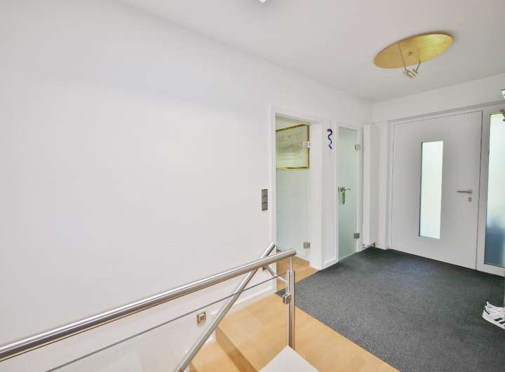 Glastüren sowie Oberlichter in Flur und Gäste-WC ermöglichen eine effektive Ausnutzung des Tageslichtes.