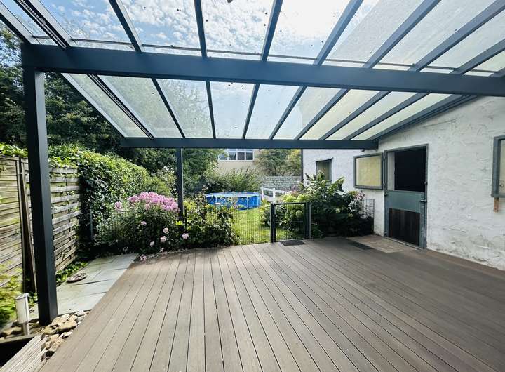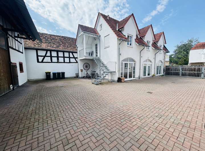 Zum Verkauf steht ein außergewöhnliches Anwesen, dessen ursprüngliches Baujahr auf 1966 zurückgeht und das umfassend in den Jahren 1998 und 2003 erweitert und modernisiert wurde. Das Anwesen umfasst drei Wohneinheiten mit einer Gesamtwohnfläche von ca. 380 qm. Die erste verfügt über ca. 170 qm Wohnfläche sowie eine zusätzlich überdachte Terrasse von ca. 36 qm. Die zweite Wohneinheit ist ca. 130 qm groß und die dritte Wohneinheit umfasst ca. 60 qm. Zudem gibt es zwei Büroeinheiten, die jeweils ca. 30 qm groß sind und derzeit vermietet werden. Die zusätzlichen Nutzflächen des Anwesens belaufen sich auf insgesamt ca. 273 qm und umfassen Stallungen, Nebengebäude, eine Scheune mit einem Gewölbe darunter, eine Halle und eine Werkstatt. Der umbaute Raum beträgt ca. 2.772 m³, was den großzügigen Charakter des Objektes unterstreicht. Strom, Wasser und Kanal wurden im Jahr 2000 saniert, während der Hof und die Fenster im Jahr 2006 erneuert wurden. Zur Eigennutzung stehen eine große, sehr schöne Wohnung von ca. 170 qm mit Klimaanlage, eine tolle überdachte und beleuchtete Terrasse sowie ein Garten bereit. Darüber hinaus gehören eine Halle, Nebengebäude, Stallungen, eine Scheune und eine Werkstatt zum Objekt. Derzeit sind zwei Wohnungen mit ca. 60 qm und ca. 120 qm sowie zwei Büros vermietet. Zu den besonderen Merkmalen des Anwesens gehören eine Durchfahrtshöhe in die Scheune von ca. 4,10 m, zusätzliche PKW-Stellplätze im Hof sowie eine Zentralheizung auch in der „Reiter- oder Partystube“ und den Nebenräumen. Die Pferdehaltung ist erlaubt. Die gewerbliche Nutzung des gesamten Objekts ist gestattet!