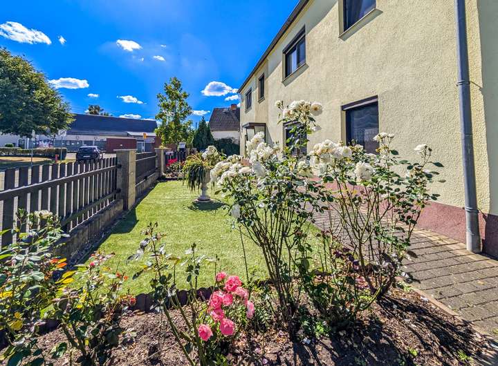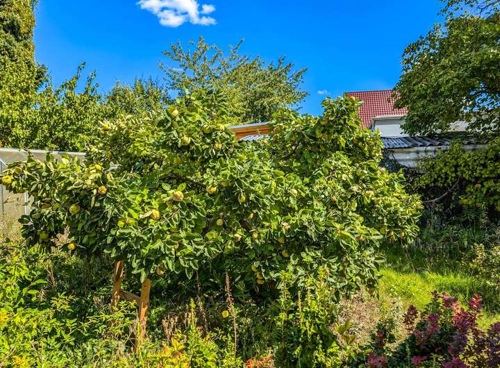 Das ca. 1.093 m² große Grundstück ist ein echtes Highlight: Ein idyllischer Garten mit alten Obstbäumen und -sträuchern lädt zum Verweilen ein und bietet Platz für Freizeit, Spiel und Erholung.
