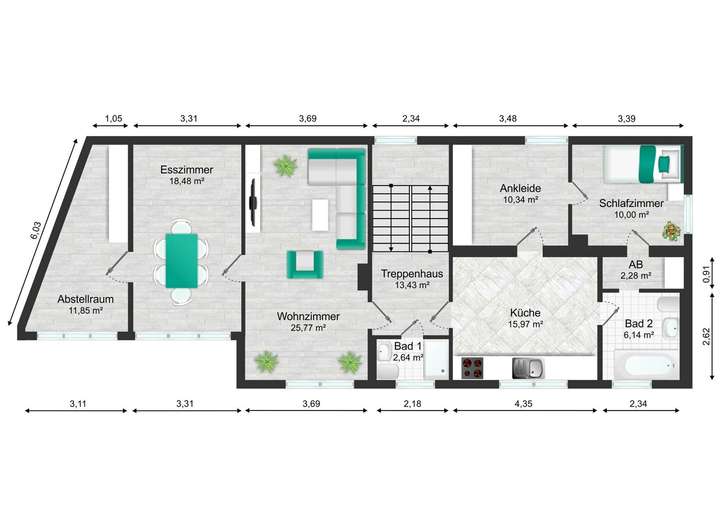 Der Grundriss ist großzügig und familienfreundlich gestaltet: