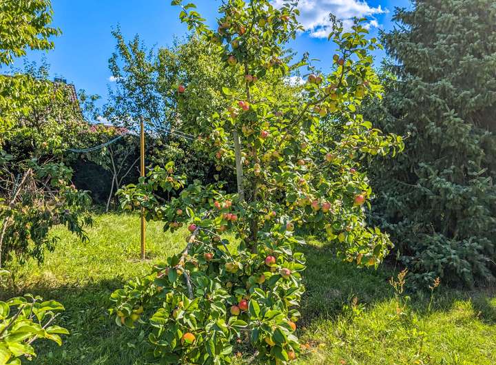 - idyllischer Garten mit Obstbäumen und -sträuchern