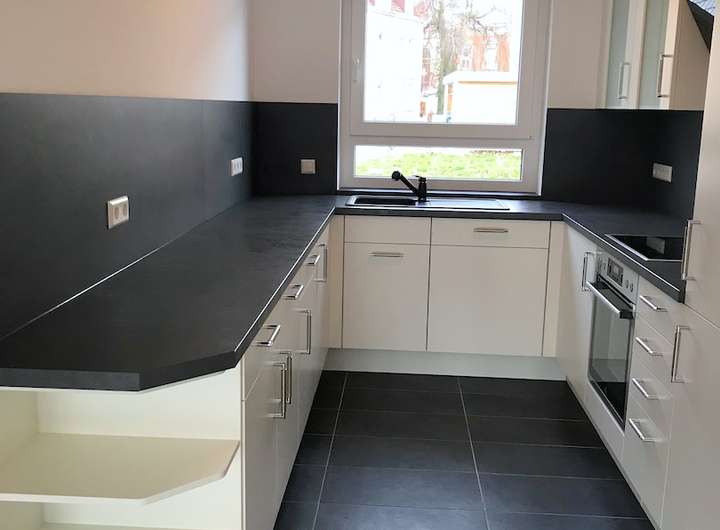 Eine neue Einbauküche mit allen Elektrogeräten wurde bereits eingebaut und wird gegen eine Nutzungsgebühr i. H. von 60 Euro monatlich bereitgestellt.