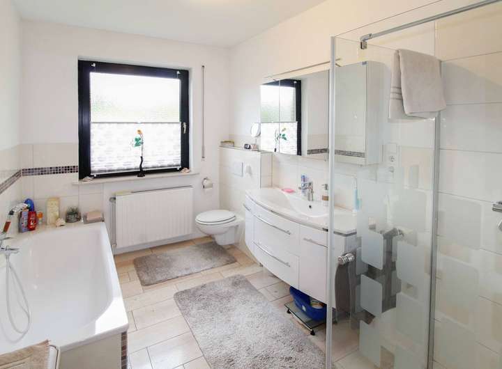 Verteilt auf 2 Etagen und eine Wohnfläche von ca. 181 m² finden Ihre Mieter insgesamt 7 Zimmer vor, darunter 5 Schlafzimmer. Zum Grundriss der Immobilie gehören außerdem 3 Badezimmer mit Dusche und Badewanne sowie ein Gäste-WC. Die Einliegerwohnung verspricht hier besonders viel Flexibilität. Komfortables Wohnen versprechen die Ausstattungsmerkmale, die u.a. eine Einbauküche sowie Laminatböden bieten.