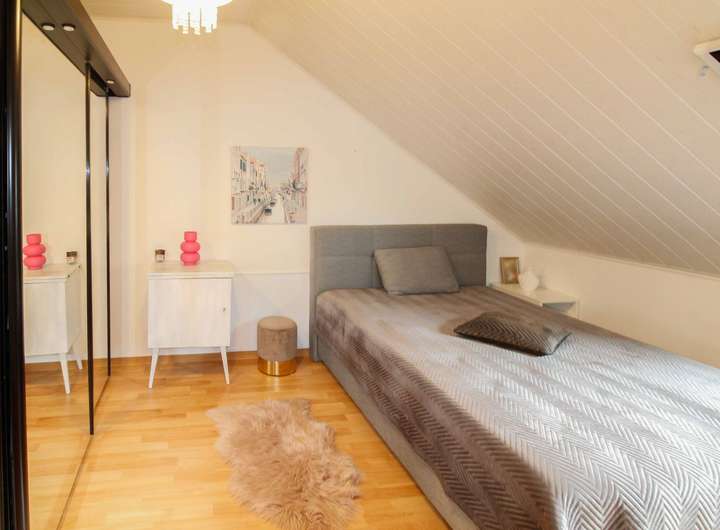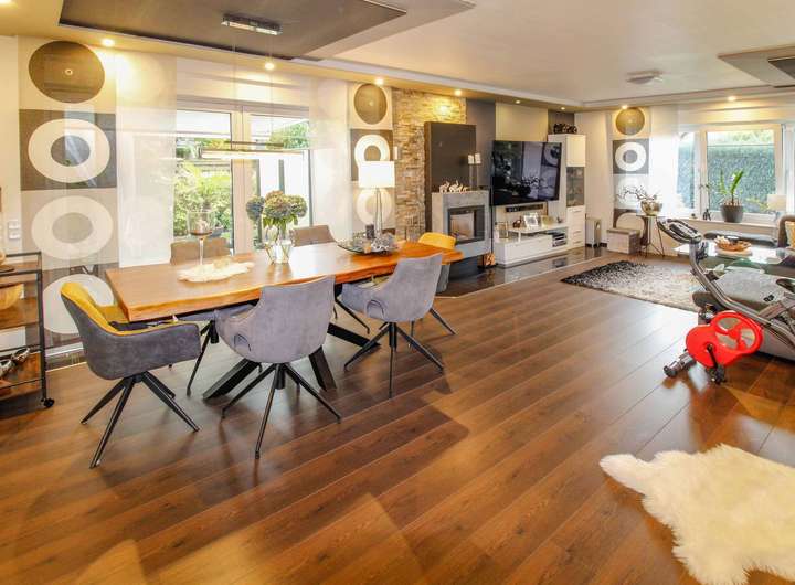Auf einer großzügigen Wohnfläche von ca. 235 m² bietet die Immobilie 7 Zimmer, darunter 6 Schlafzimmer. 2 Badezimmer mit Dusche und Badewanne sowie ein Gäste-WC sindsind ebenfalls Teil des Grundrisses. Viele Köpfe, viele Hobbys, viele Ideen: Dank der großen Raumvielfalt können Sie das Zuhause nutzen, wie es Ihnen gefällt. Gehobenes Wohnen und viel Komfort im Alltag verspricht die attraktive Ausstattung, die u.a. eine Fußbodenheizung, eine Einbauküche sowie einen Kaminofen umfasst.