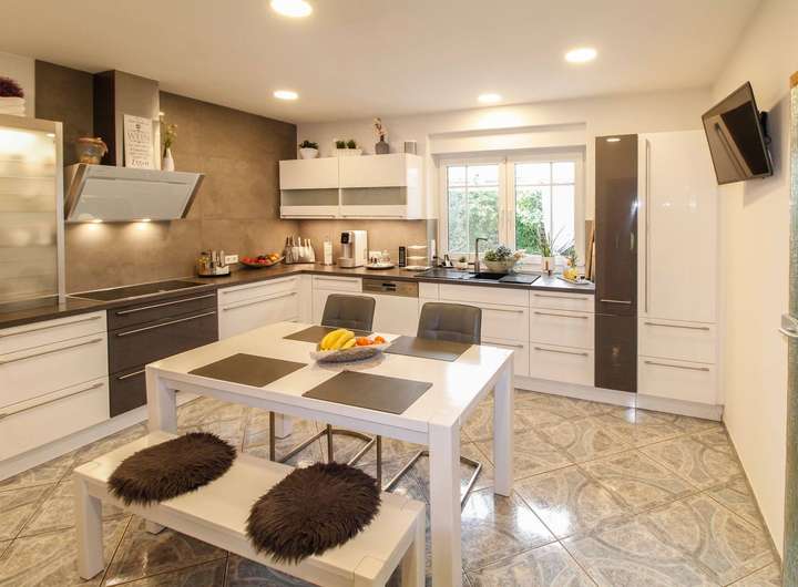 + Hochwertig ausgestattetes Haus mit einer Fußbodenheizung, einer Einbauküche sowie einem Kaminofen