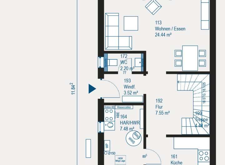 - geringer Mehrpreis für Effizienzhausstandard 40, mit der Möglichkeit für KfW-Fördermittel