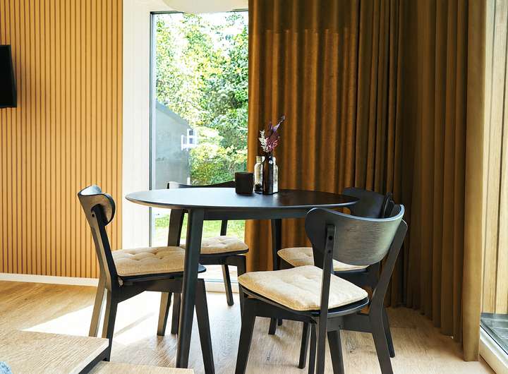 Die winterfeste Bauweise mit EH55 Effizienzstandard, elektrischer Fußbodenheizung, moderner Dämmung, einem effizienten Lüftungssystem und pflegeleichten Außenmaterialien sorgt für hohen Wohnkomfort und niedrige Betriebskosten. Innen bietet das Haus eine moderne Einbauküche mit Induktion, Backofen und Kühlschrank, einen hellen Wohn und Essbereich mit großer Fensterfront, zwei vollwertige Schlafzimmer, ein stilvolles Bad mit 90x90 Dusche sowie eine moderne Elektroinstallation. Außen überzeugt die wartungsarme Fassade in Anthrazit, das integrierte Fahrgestell und das zeitlose Design.
