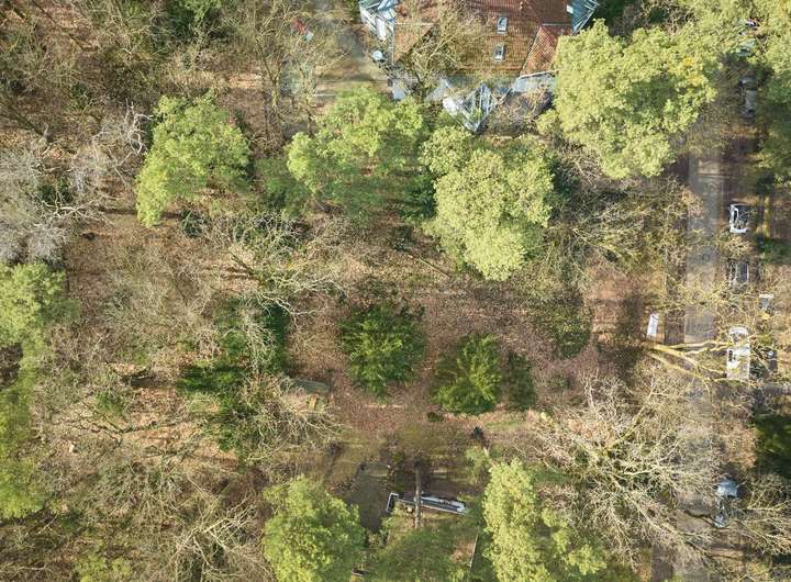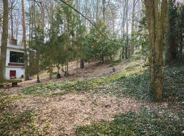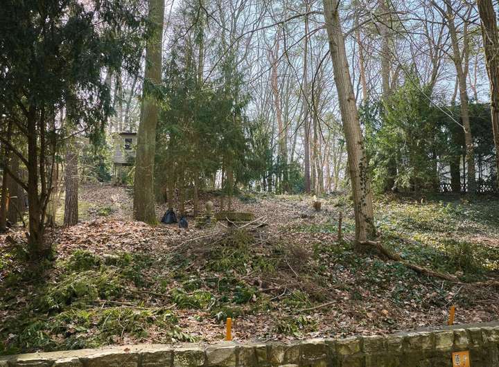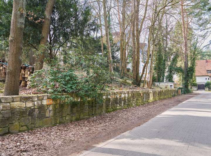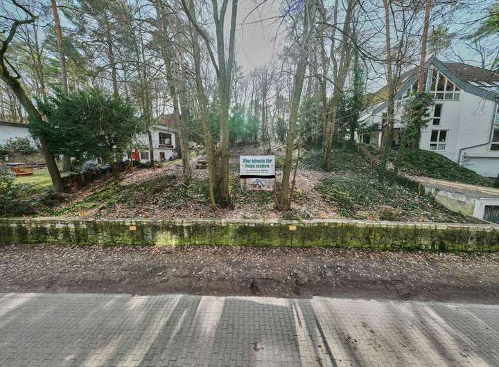 Das Grundstück befindet sich in einer ruhigen und grünen Wohngegend, die von vielen Bäumen und weitläufigen Grünflächen umgeben ist. Diese attraktive Lage bietet eine perfekte Balance zwischen naturnahem Wohnen und einer hervorragenden Anbindung an das urbane Leben. Die Gegend zeichnet sich durch ihre eleganten Villen, Alleen sowie die wald- und wasserreiche Umgebung aus und bietet zahlreiche Möglichkeiten für Sport und Freizeit.