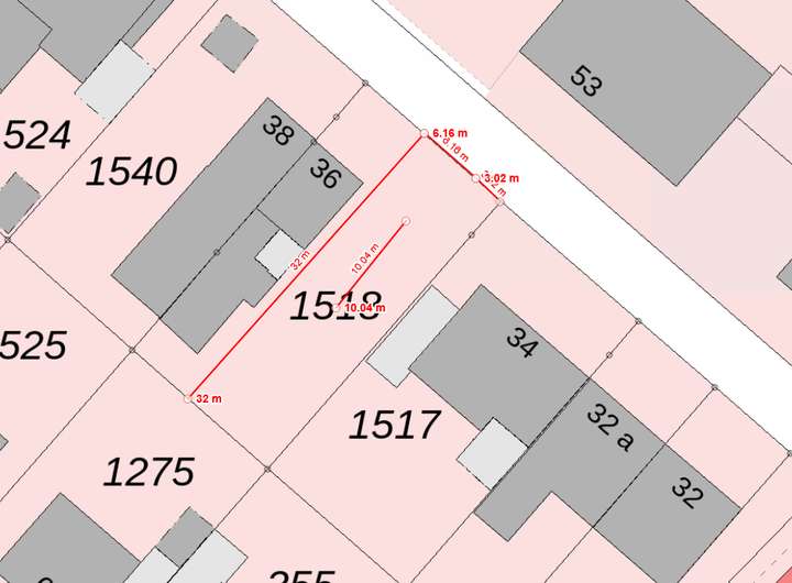 Auf dem neuen Grundstück kann ein Haus mit einer Breite von ca. 6,16 m x 10 m. Der erforderliche Abstand von 3 m zum Nachbargrundstück ist hierbei bereits berücksichtigt.